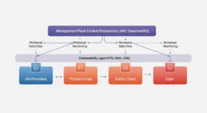 The third trait — and the one most often underinvested — is a single management plane across all environments. Without it, you are operating multiple clouds in parallel, not a hybrid cloud. Unified hybrid cloud management tools include container orchestration platforms (Kubernetes is the de-facto standard for workload portability), policy-as-code frameworks for consistent governance, centralized identity and access management (IAM) federating across environments, and cloud management platforms like Red Hat OpenShift, AWS Outposts, or Google Anthos that extend a consistent API surface to on-premises and edge nodes.